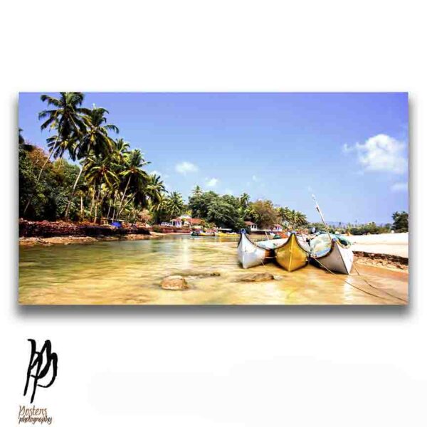 Archival fine art Giclee ai fishing boats on Baga Beach at Goa, India.