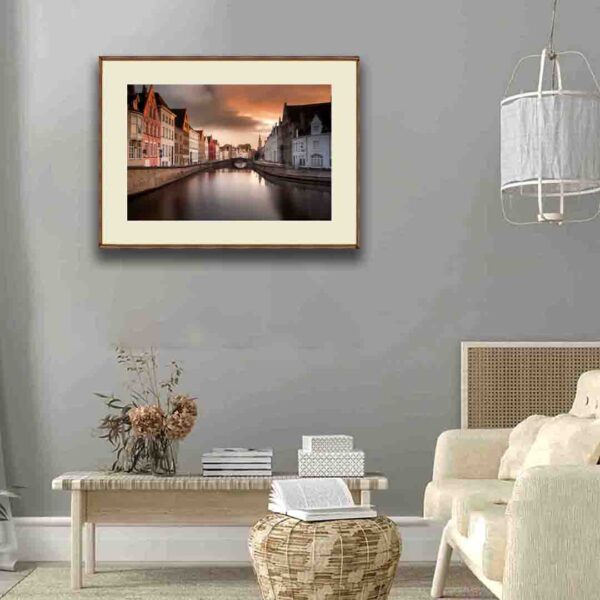 Bring timeless European charm to your space with this framed photograph of Bruges, Belgium. Featuring a serene canal, historic gabled buildings, and a golden sunset sky, this high-resolution print adds warmth and sophistication to any room. Perfect for living rooms, offices, or gifting. Tap click “bruges ” to see our Bruges gallery and “belgium” for Belgium gallery.