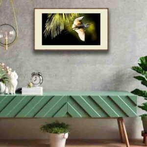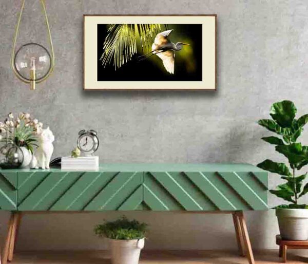 Thrilled with my recent purchase, the “Awesome Photographic Giclee Print of an Egret Take Off with a Palm Tree in the Background”! This print is a true gem that beautifully captures the elegance of an egret taking flight against the backdrop of a palm tree. The details are exquisite, and the photographer’s mastery in freezing this dynamic moment is commendable. I had the print framed and It has become the focal point of my study, infusing my space with a perfect blend of avian grace and tropical allure. Highly recommend for those who appreciate the the captivating beauty of nature.