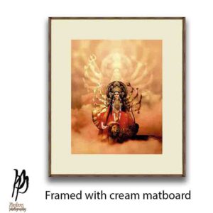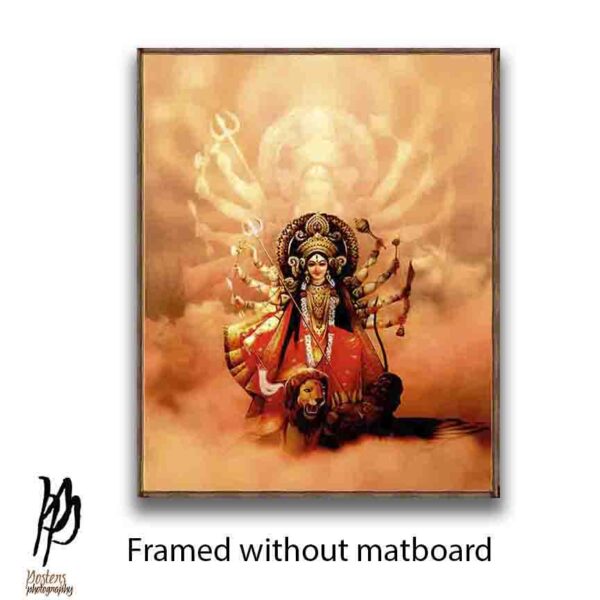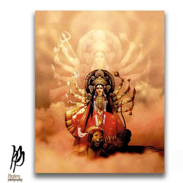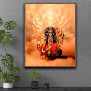 Invoke divine protection and spiritual strength with this striking poster of Goddess Durga. Depicted in radiant detail, the warrior goddess stands atop her lion, wielding sacred weapons in her many arms. A symbol of victory over evil and inner courage, this artwork is perfect for festive décor, meditation spaces, or devotional gifting. Printed on premium material for lasting vibrance. The Art is perfect for your living room, bedroom or office.