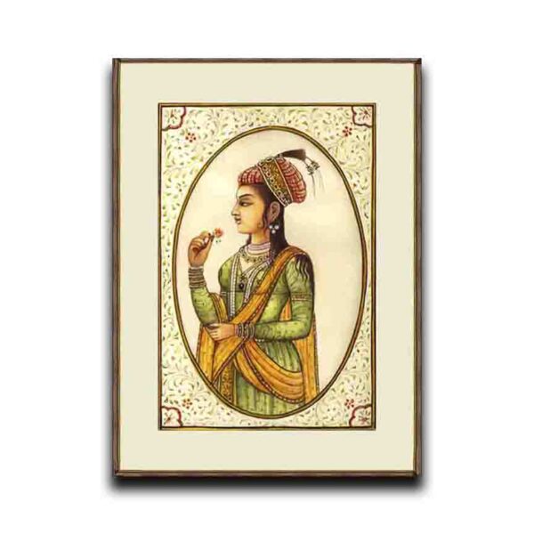 Rajasthani Folk art painting of a Noble Lady dating back to Mughal times, which can  can elevate the aesthetic of any space, giving it a regal or luxurious feel.