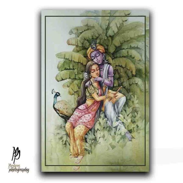 This vibrant artwork captures the iconic duo of Radha and Krishna in a serene forest setting, surrounded by lush greenery and a watchful peacock. Rich in cultural symbolism and romantic energy, it’s a perfect piece for collectors of devotional art, nature-inspired décor, or Indian heritage themes. Ideal for living rooms, meditation corners, or gallery walls, it brings warmth, intimacy, and timeless beauty to any space. Tap/click tag “radhakrishna” to view our Radha Krishna Gallery and “krishna“ for our Krishna gallery.