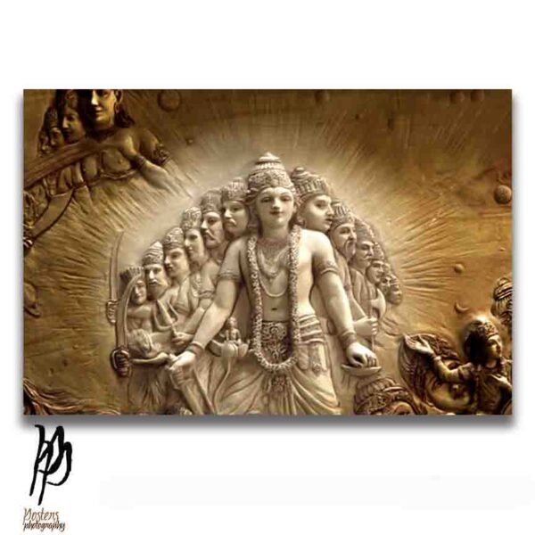 Amazing poster of of the bas relief of Lord Krishna in his Vishvaroopi form. He had assumed this form when he blessed Arjun at the start of the Mahabharat War. Tap click tag ‘krishna” to view our krishna gallery